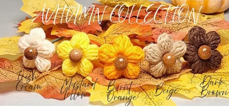 5x Handmade Crocheted Flower Set – Autumn Collection