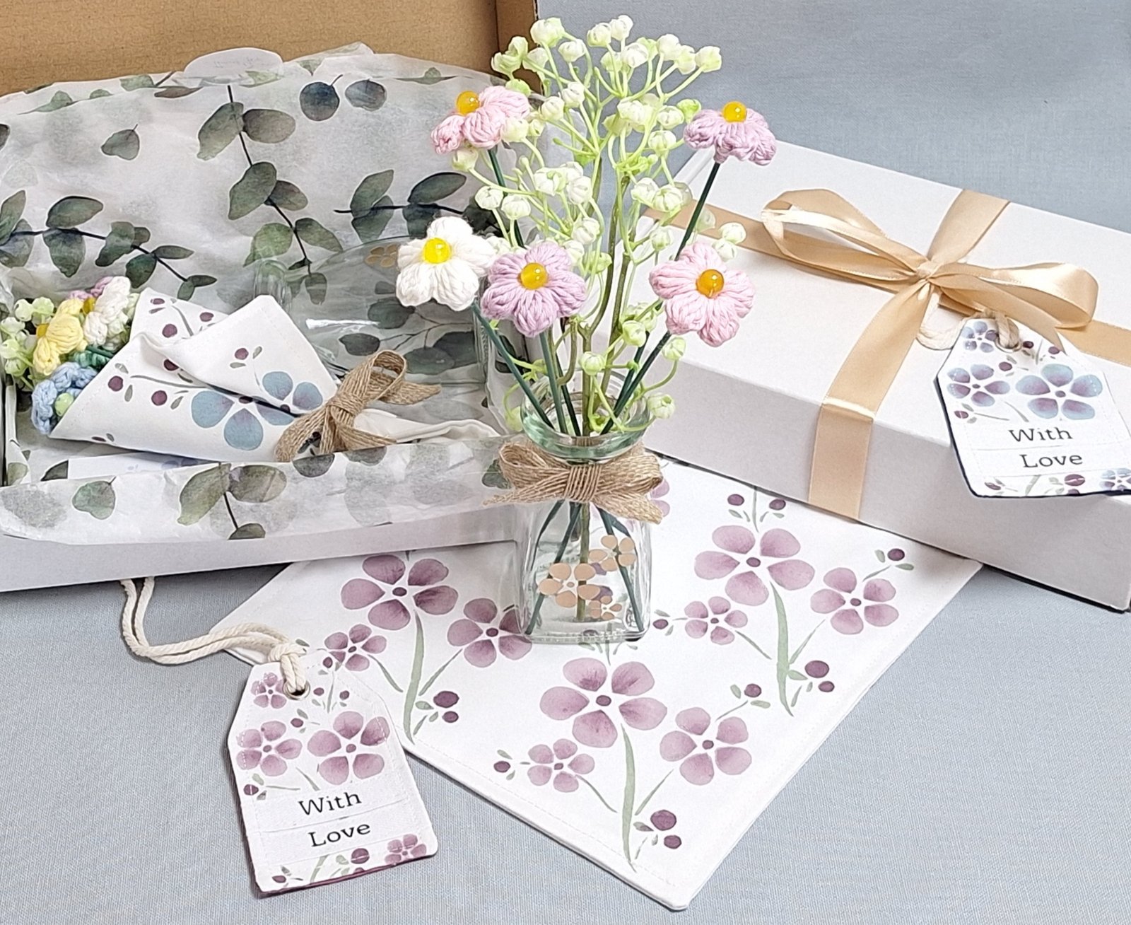 Treat someone special (or yourself) to this thoughtfully crafted bundle, combining the charm of handmade crochet flowers with elegant, artisan finishing touches. Designed to feel personal, meaningful, and beautifully presented, this set offers exceptional value while celebrating the beauty of slow, intentional craftsmanship.